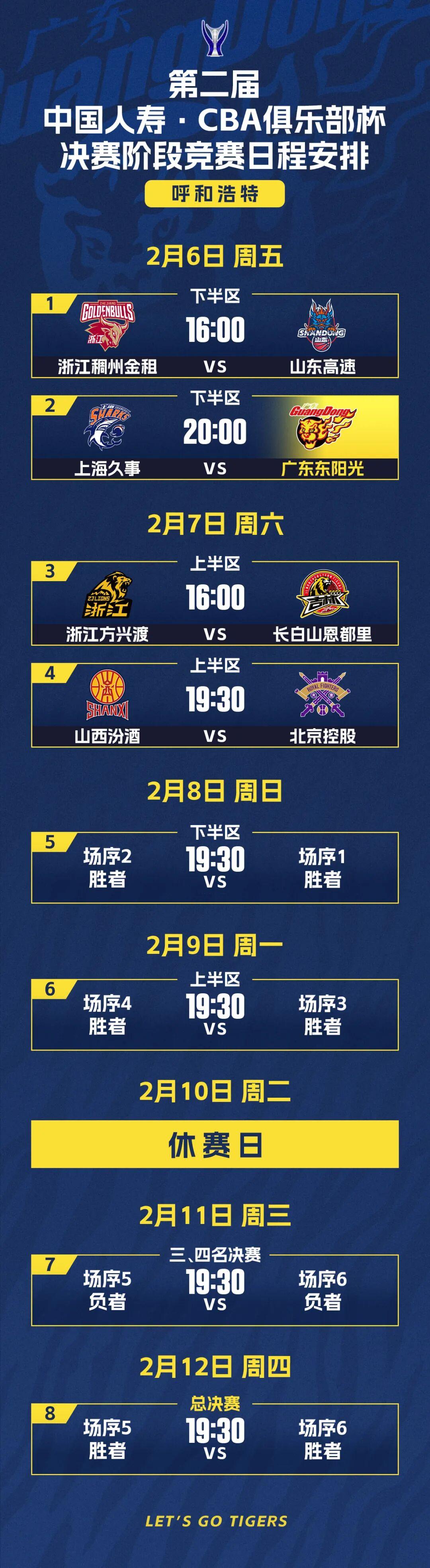 2月6日-12日,第二届CBA俱乐部杯决赛阶段将在内蒙古自治区呼和浩特市内蒙古体育馆举行。明晚20点广东东阳光将与上海久事交手,争夺一个四强席位。